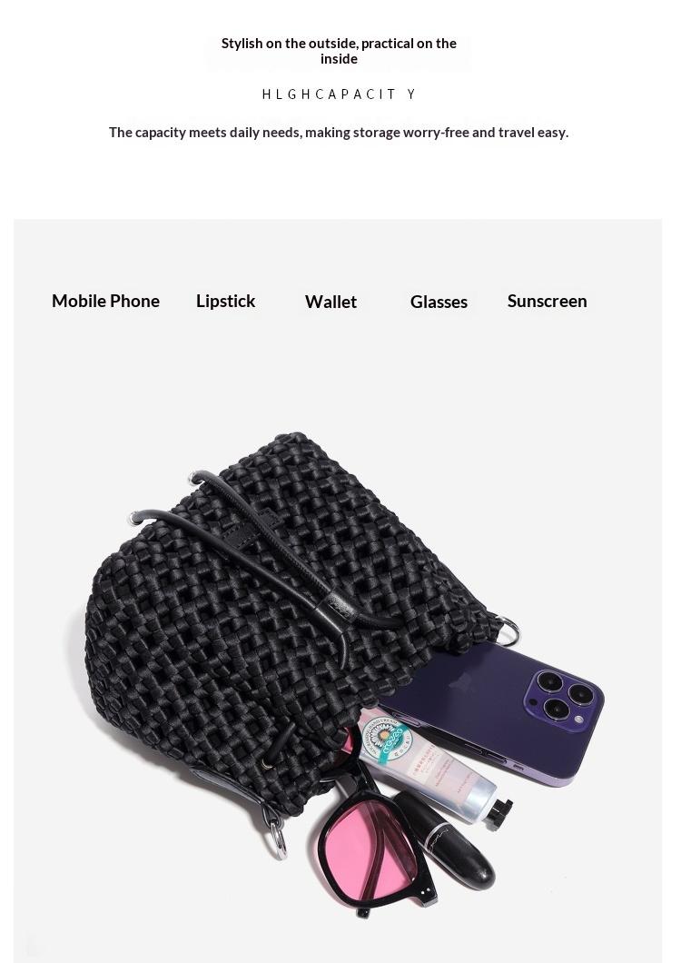 Woven Neoprene Crossbody Bucket Bag – Lightweight Drawstring Tote for Daily Casual Travel